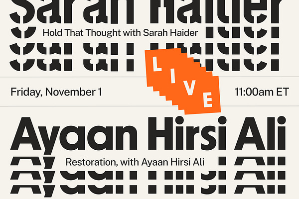 Join my live video Substack dialogue with Ayaan Hirsi Ali tomorrow!